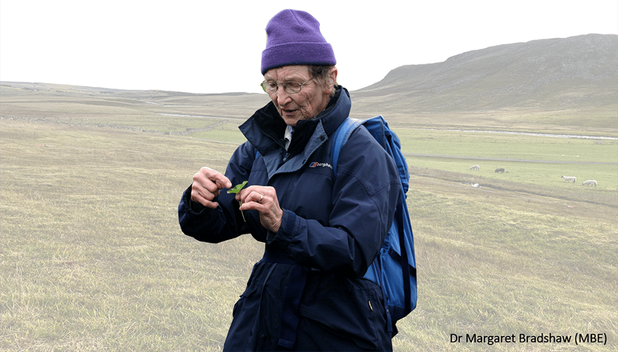 Dr. Margaret Bradshaw (MBE) is a nationally renowned botanist specializing in plant conservation. She has devoted the majority of her professional career to the study and protection of Upper Teesdale’s rare plants since the 1950s.