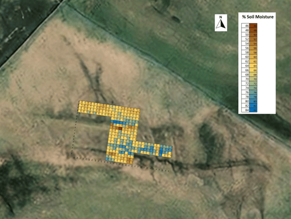 Picture a. Soil moisture grid measurements on Widdybank Meadow. Image Credit: Delta-T Devices Ltd