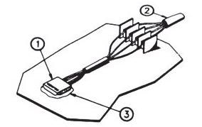 Installation of Columbia Strain Sensor. 1. Strain Sensor bonded to surface under test; 2. Leads connected to wire harness; and 3. Coat sensor and wires with waterproofing material. Image Credit: Columbia Research Laboratories, Inc.
