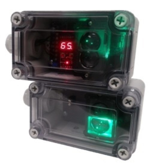 The transmitter is mounted up to 30 feet from the receiver module, then aligned to focus the light onto the receiver. The illumination level is adjusted for the distance and light transmission range necessary for the specific application.